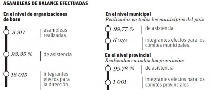 De la realización del proceso en cada nivel, destacaron la motivación y profundidad de los debates, el fortalecimiento de las estructuras de dirección, el incremento de la presencia de mujeres y jóvenes, y el estrechamiento de los vínculos con los asociados, sus familiares, los cuadros, los trabajadores y las comunidades.