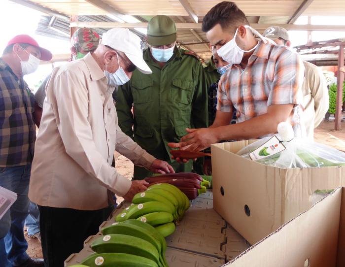Asimismo, constató en la Agropecuaria de Remedios y el polo productivo de Dolores, este último ubicado en Caibarién, los avances en la siembra cultivos como el plátano, yuca, maíz y coco, del cual dijo que puede convertirse en un producto estrella del municipio, que contribuya a la sustitución de importaciones.