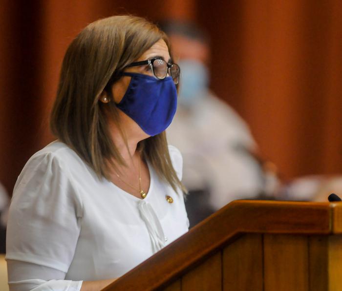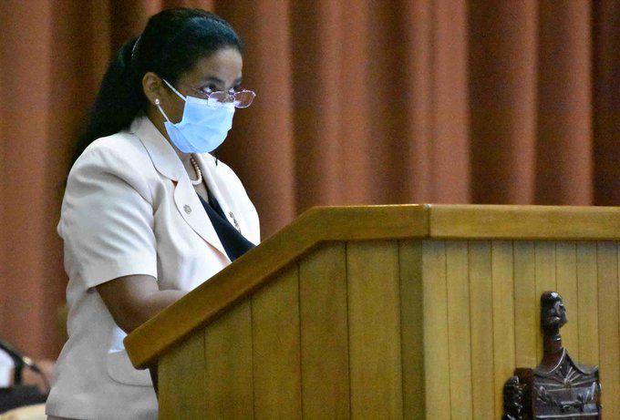 La ministra de Finanzas y Precios, Meisi Bolaños Weiss, presenta ante el Parlamento la liquidación del Presupuesto durante el pasado año.