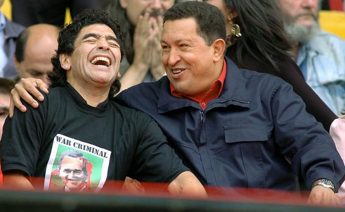 Comparte con Hugo Chávez y Diego Armando Maradona, durante la visita que el astro del fútbol mundial le hiciera al presidente venezolano en el lugar donde recibe tratamiento médico contra el cáncer.
