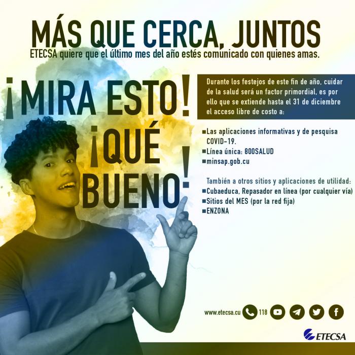 COVID-19, la línea única 800-SALUD, y sitios de interés como Cubaeduca, Repasador en línea, mined.gob.cu,