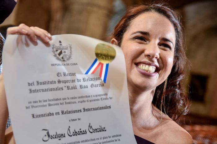 Anabel, Diosdado y Ariel, pertenecen al grupo de los 27 egresados del Instituto Superior de Relaciones Internacionales Raúl Roa García, que este 10 de diciembre celebró su octava graduación, con la presencia del canciller Bruno Rodríguez Parrilla y dedicada al historiador Eusebio Leal Spengler.