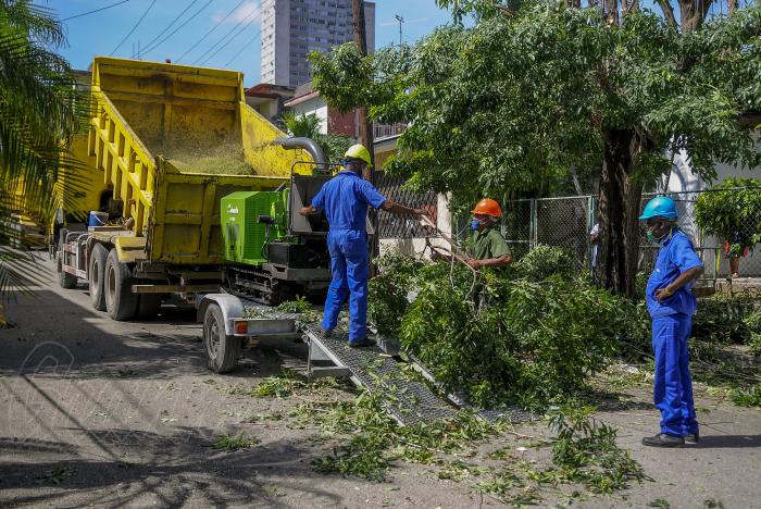 La poda de árboles garantiza la seguridad de las líneas telefónicas y eléctricas.Foto: José Manuel Correa