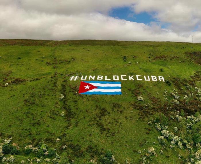 «Amigos irlandeses y cubanos residentes, han colocado en una colina visible desde la ciudad de Belfast, una bandera de #Cuba, de 46 por 23 metros, la más grande en el mundo. La acompaña un letrero también gigante, demandando #UnblockCuba», publicó en Twitter el Primer Secretario del Comité Central del Partido y Presidente de Cuba, Miguel Díaz-Canel Bermúdez.