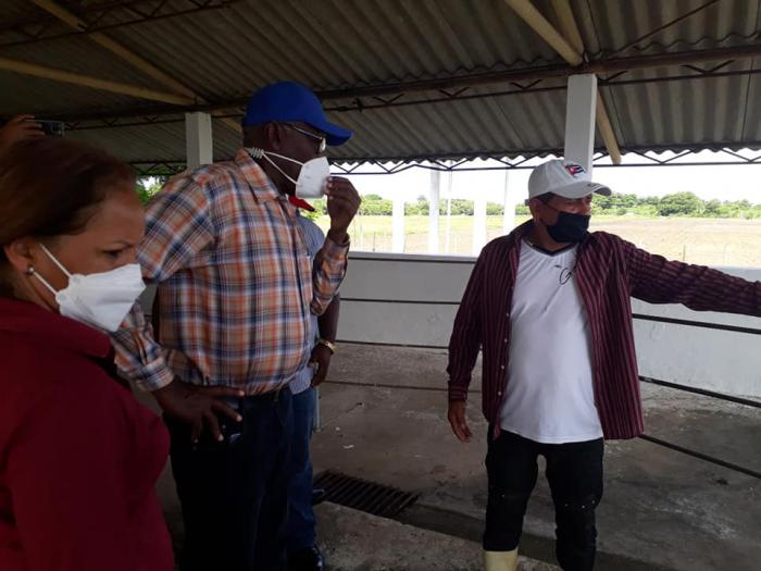 El vicepresidente de la República, Salvador Valdés, en la vaquería número 5, una de las recuperadas, conversó con Genito Delgado Áreas, productor destacado. Apreció las condiciones en el abasto de agua, la siembra que garantiza la sostenibilidad en el alimento animal y el buen manejo de la masa al no reportarse muertes.
