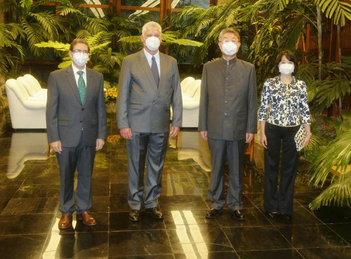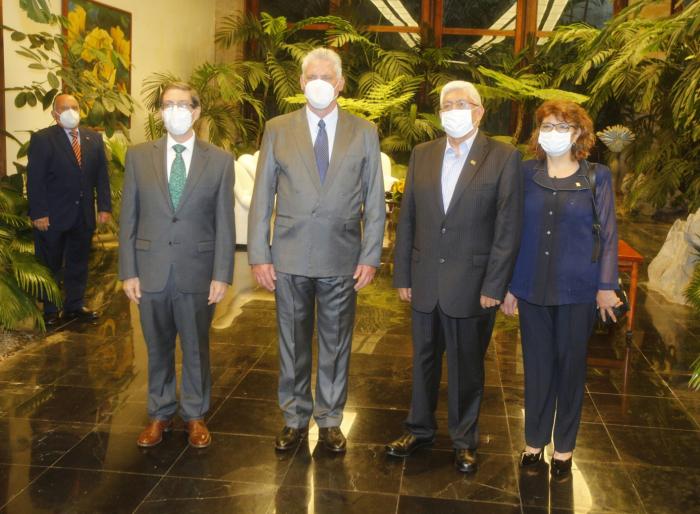 El primer secretario del Comité Central del Partido Comunista y Presidente de la República de Cuba, Miguel Díaz-Canel Bermúdez, acompañado por el ministro de Relaciones Exteriores, Bruno Rodríguez Parrilla, recibió este jueves las Cartas Credenciales de nuevos embajadores.