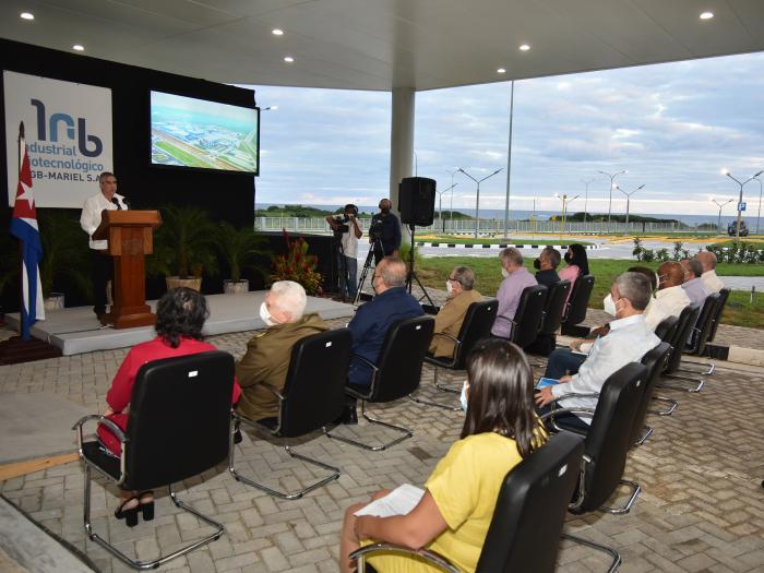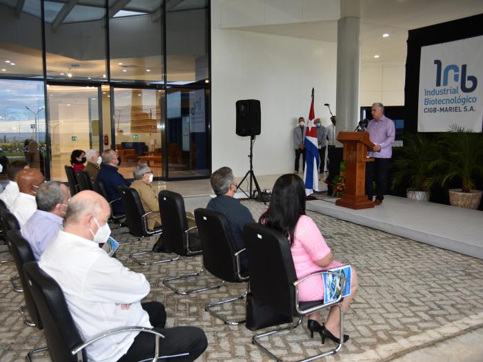 El Jefe de Estado, al hacer uso de la palabra, destacó que CIGB Mariel S.A. es fruto de una inversión diseñada por tecnólogos e ingenieros de la Isla, financiada con capital 100 % cubano, cumpliendo instrucciones del General de Ejército.