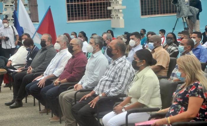 En la Ciudad Escolar Libertad, desde la escuela primaria Pedro Domingo Murillo, el acto que estuvo acompañado de poesía, de reconocimiento a maestros y a centros que enfrentaron estos duros tiempos de la COVID-19, también contó con la presencia del Miembro del Buró Político y Primer Ministro de la República de Cuba, Manuel Marrero Cruz; del viceprimer ministro, Jorge Luis Perdomo Di-Lella; del primer secretario del Comité Provincial del Partido en La Habana, Luis Antonio Torres Iríbar; de la titular de Educación, Ena Elsa Velázquez Cobiella; y de otras autoridades del Partido y el Gobierno.