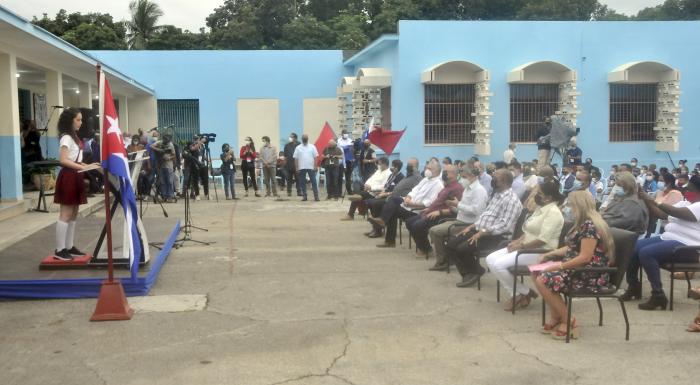 A la emblemática institución educativa, en su cumpleaños 45, correspondió el honor de ser sede del acto provincial que pone punto final a la «cuarentena» en todos los tipos de enseñanza, para dar paso a una marea multicolor presta a retomar las clases y vencer los objetivos del curso escolar 2020-2021.