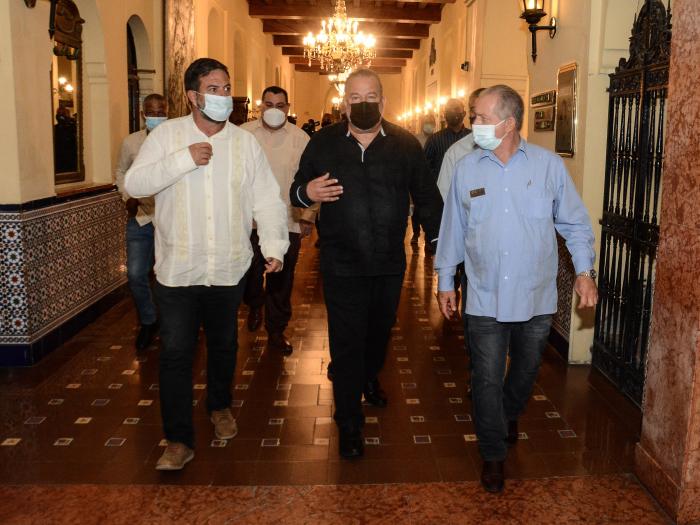 Junto al miembro del Secretariado del Comité Central del Partido Comunista y jefe del departamento Productivo de Bienes y Servicios, Félix Duarte Ortega, el Primer Ministro acudió al Hotel Nacional de Cuba, donde se reunieron para dar la arrancada a la industria del ocio en la «era de la nueva normalidad», trabajadores y directivos del sector, y ejecutivos de las cadenas hoteleras internacionales que operan en la Isla.