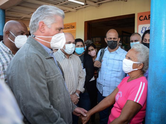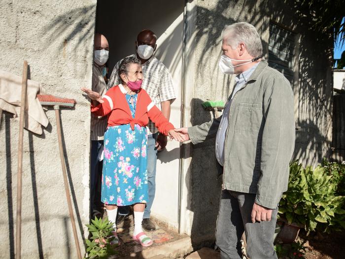 Mercedes recibió al Presidente Díaz-Canel en la puerta de su casa. “¡Va para la casita de Mercedes!”, decía la comitiva de personas que a esa hora temprano del viernes le seguían el paso al Jefe de Estado por la comunidad El Bejerano, en el municipio artemiseño de Alquízar.