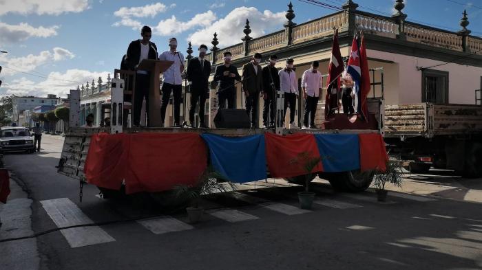 Consignas, fotos y carteles evocando el legado de Fidel y Raúl, de respaldo a la dirección del país que preside Miguel Díaz-Canel Bermúdez, y de condena a la agresiva política del gobierno de Estados Unidos y sus serviles lacayos en la Isla, enarboló a su paso el pueblo revolucionario luciendo los colores patrios y banderas cubanas y del 26 de Julio.