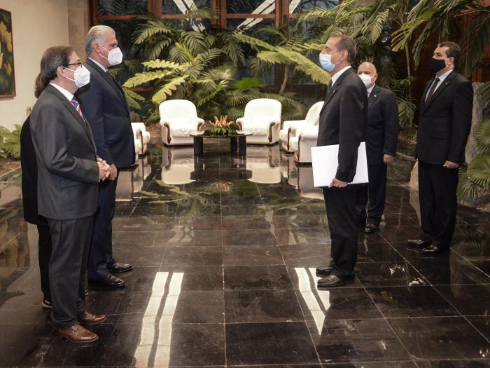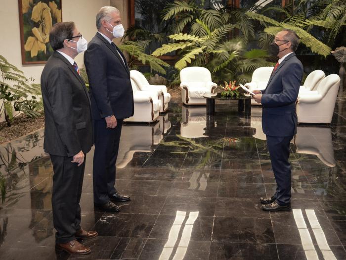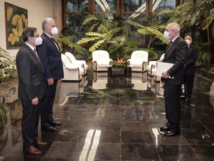El Primer Secretario del Comité Central del Partido Comunista y Presidente de la República de Cuba, Miguel Díaz-Canel Bermúdez, recibió en la mañana de este viernes, en audiencia solemne en el Palacio de la Revolución, las cartas credenciales de cinco nuevos embajadores en la Isla.