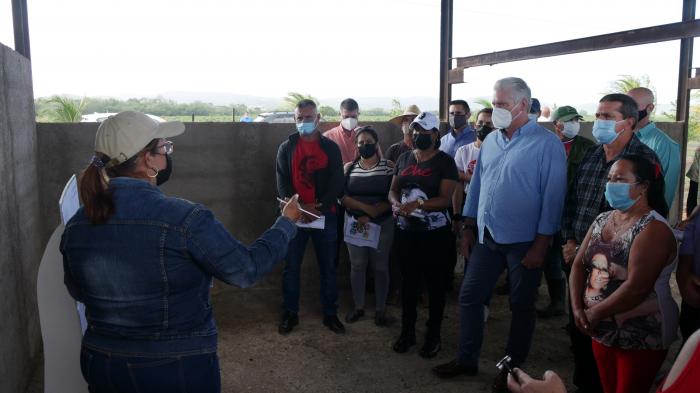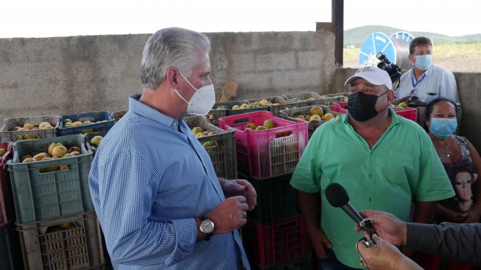 Entre lo que se hace para emplear los biopreparados en sustitución de fertilizantes y otros productos importados de uso agrícola, Liudmila Rodríguez, militante de un núcleo de la esfera agrícola, le explicó al Jefe de Estado que, a la par de incrementar el uso, hoy se crea un centro en el que la materia orgánica tradicional se transformará con el empleo de la ciencia para sacarle más provecho.
