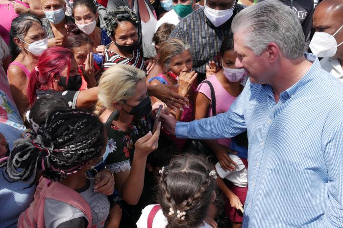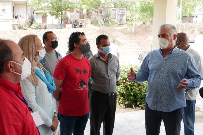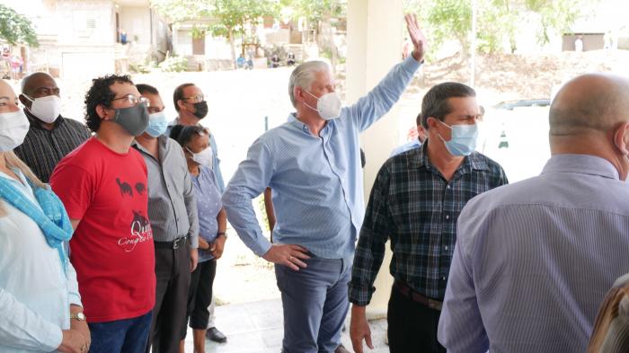 Díaz-Canel también entró al nuevo local del Sistema de Atención a la Familia, «un sueño para la comunidad», según lo definió el profesor universitario Milton de la Cruz Batista, que a sus 29 años tiene una tarea colosal: ser delegado de circunscripción, la número 81. En este lugar se atienden 64 personas en situación de vulnerabilidad, a las que se le ha acercado el alimento hasta el propio barrio.