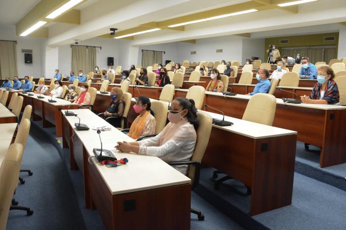Hubo reconocimientos en el encuentro: A propuesta del Buró Sindical del Palacio de la Revolución, el Sindicato Nacional de los Trabajadores de la Administración Pública, por toda la labor realizada en estos 60 años, acordó entregar al colectivo de Versiones Taquigráficas la Placa Conmemorativa aniversario 60 de la fundación del Sindicato. Y luego trabajadores y jubilados recibieron de manos de Díaz-Canel Bermúdez diplomas que simbolizan la gratitud por tanto esfuerzo.