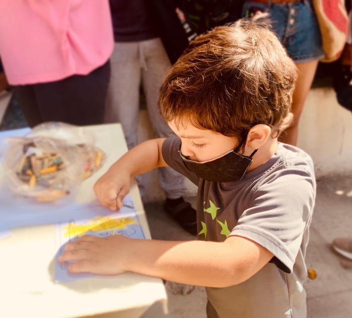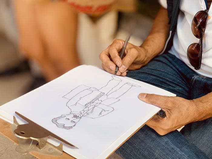 Colegas de otros medios dibujan caricaturas de los periodistas y del pueblo, a pedido Foto: Roberto Garaycoa Martínez