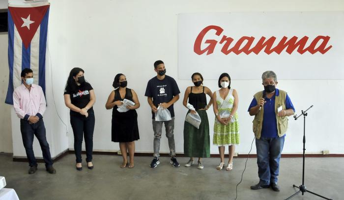 Luanda Hernández Diago, funcionaria de la UJC municipal, entregó el diploma que acredita el reconocimiento a la directora del periódico, Yailin Orta Rivera, quien luego describiría el mismo como un momento que «ennoblece y alienta» al colectivo de trabajadores.