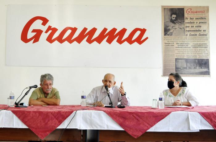 El jefe de Fotografía del Granma, Juvenal Balán Neyra, abrió el debate con una breve reseña lo ocurrido durante la invasión mercenaria a Playa Girán.