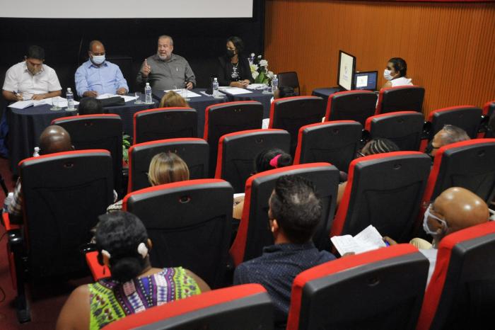 Desde el Centro Cultural «En Guayabera», tuvo lugar la reunión, la cual también contó desde la presidencia con el Gobernador de La Habana, Reinaldo García Zapata, así como con el Primer Secretario del Comité Municipal del Partido en Habana del Este, Ricmar Rodríguez Gutiérrez, y el intendente del municipio, José Ángel Ordaz Pacheco.