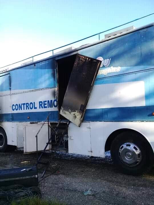 Iniciado presumiblemente a causa de un problema eléctrico, el siniestro se desató en el motor del carro y rápidamente se propagó hacia la cabina de transmisión, dañando buena parte de los equipos y accesorios.