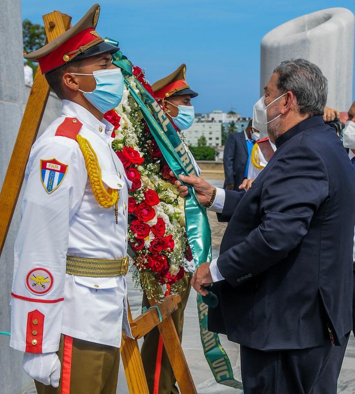 En la fraternal jornada acompañaron al distinguido visitante el ministro de Educación, Curtis King; la secretaria permanente y jefa de la Secretaría del Primer Ministro, Angie Jackson Williams; el embajador de San Vicente y las Granadinas en Cuba, excelentísimo señor Ellsworth I. A. John; la embajadora de San Vicente y las Granadinas ante la Organización de Naciones Unidas, Rhonda King, y la consejera Jimesha Prince.