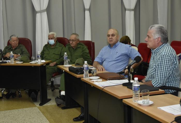 Vamos a seguir trabajando, como se ha estado haciendo hasta ahora, en la recuperación de las afectaciones, enfatizó el Primer Secretario del Comité Central del Partido Comunista de Cuba y Presidente de la República, Miguel Díaz-Canel Bermúdez, al encabezar este domingo, en la sede del Estado Mayor Nacional de la Defensa Civil, un nuevo encuentro para dar seguimiento a la situación ocasionada por las intensas lluvias en el país.