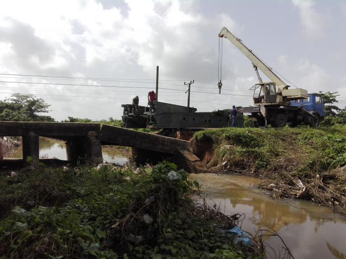 Pinar del Río.-Especialistas en ingeniería del Ejército Occidental y de la Región Militar Pinar del Río llevaron a cabo el montaje de un puente mecanizado para volver a enlazar por carretera a la cabecera del municipio de San Luis con los Consejos Populares El Corojo Retiro-Barrigona.
