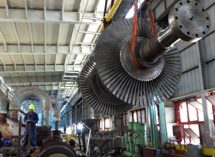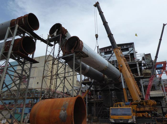La termoeléctrica Lidio Ramón Pérez, de Felton, es una ciudadela de hierro de matices diversos. Ellos están, lo mismo en el gris azulado de las aspas de la turbina que en la Unidad 2 –en pleno mantenimiento capital–, a punto de ser montada sobre sus pedestales brillantes, luego de un minucioso pulido; en el rojo-marrón originado por la oxidación en enormes segmentos de tubos que serán cubiertos por pinturas protectoras tan pronto se conviertan en largos conductos; en los destellos de las soldaduras mediante las que se unen cientos, miles de elementos; en la plateada envoltura de las láminas empleadas para recubrir las fibras de vidrio que garantizan el aislamiento térmico de extensas y laberínticas tuberías.