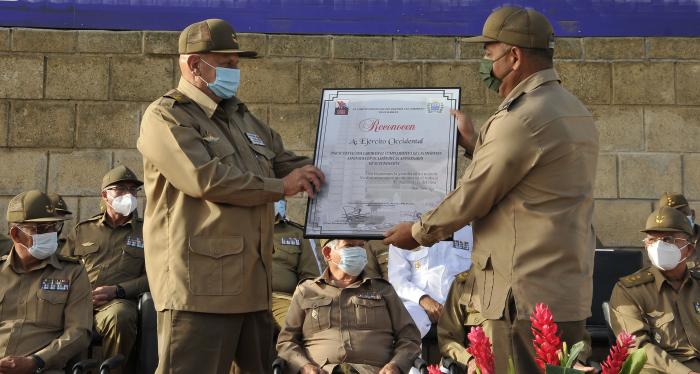 El general de cuerpo de ejército Álvaro López Miera, miembro del Buró Político del Partido y ministro de las Fuerzas Armadas Revolucionaras (FAR), envió una carta de felicitación al Ejército Occidental en ocasión de cumplir ese mando militar el aniversario 61 de su fundación, celebrado este martes en acto político y ceremonia militar en la capital.