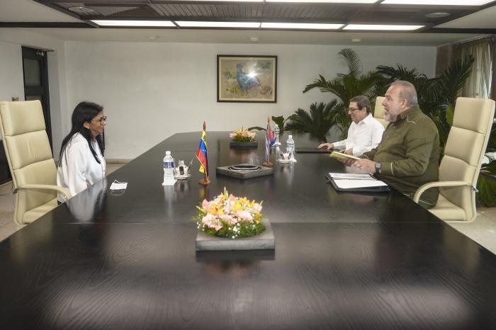 El miembro del Buró Político y primer ministro, Manuel Marrero Cruz, ofreció este viernes, en el Palacio de la Revolución, un cálido recibimiento a la vicepresidenta ejecutiva de la República Bolivariana de Venezuela, Delcy Rodríguez Gómez, quien realizó una visita de trabajo a nuestro país.