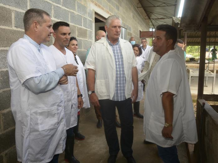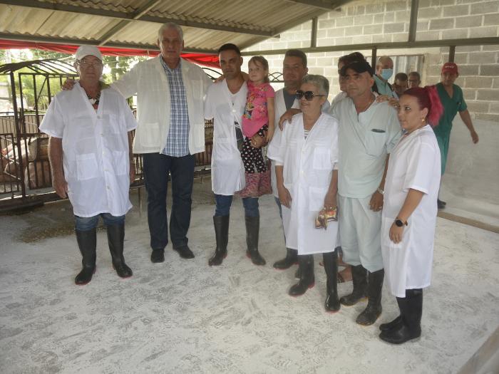 En Camajuaní el Jefe de Estado visitó al joven productor Yusdany Rojas Pérez, de la CCS “Juan Verdecia”, en la comunidad el Níspero. Este cubano que despierta admiración por su rotundo éxito pone todo su empeño en la crianza porcina, en la siembra de cultivos varios que tiene como principal destino al alimento animal, en el cultivo de tabaco tapado, y en la siembra de caña.