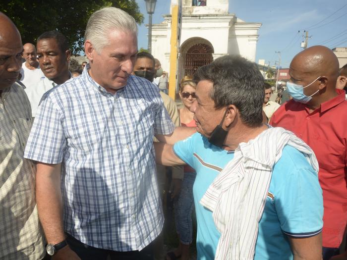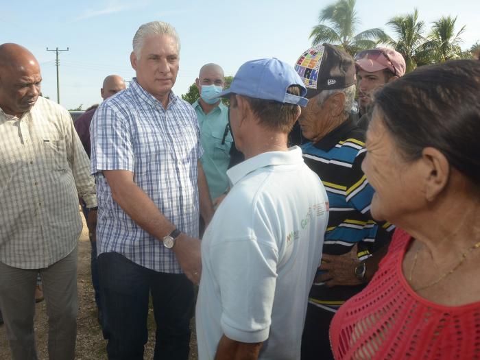 Todo lo que allí luce distinto fue visitado por el mandatario: el círculo social de la cooperativa, la consulta médica, la bodega. En el recorrido preguntó sobre el comportamiento de la epidemia de COVID-19, y sobre el dengue; y siguió rumbo al Consejo Popular de Vueltas, donde saludó a los pobladores e indagó, desde la Casa de la Cultura, por cuánto se hace en pos de la sensibilidad y la recreación de los pobladores.
