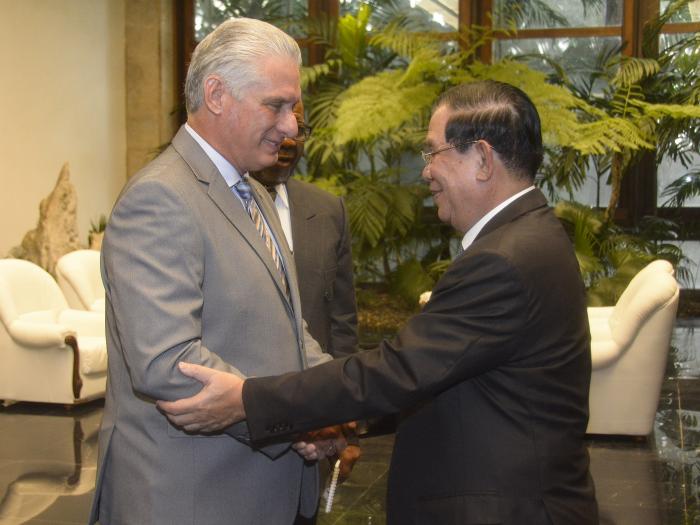 Del apoyo incondicional que ha dado Cambodia a Cuba en su lucha contra el bloqueo económico, comercial y financiero impuesto por el Gobierno de los Estados Unidos comentó también Díaz-Canel al Primer Ministro, a quien agradeció la convicción con que siempre lo han hecho.