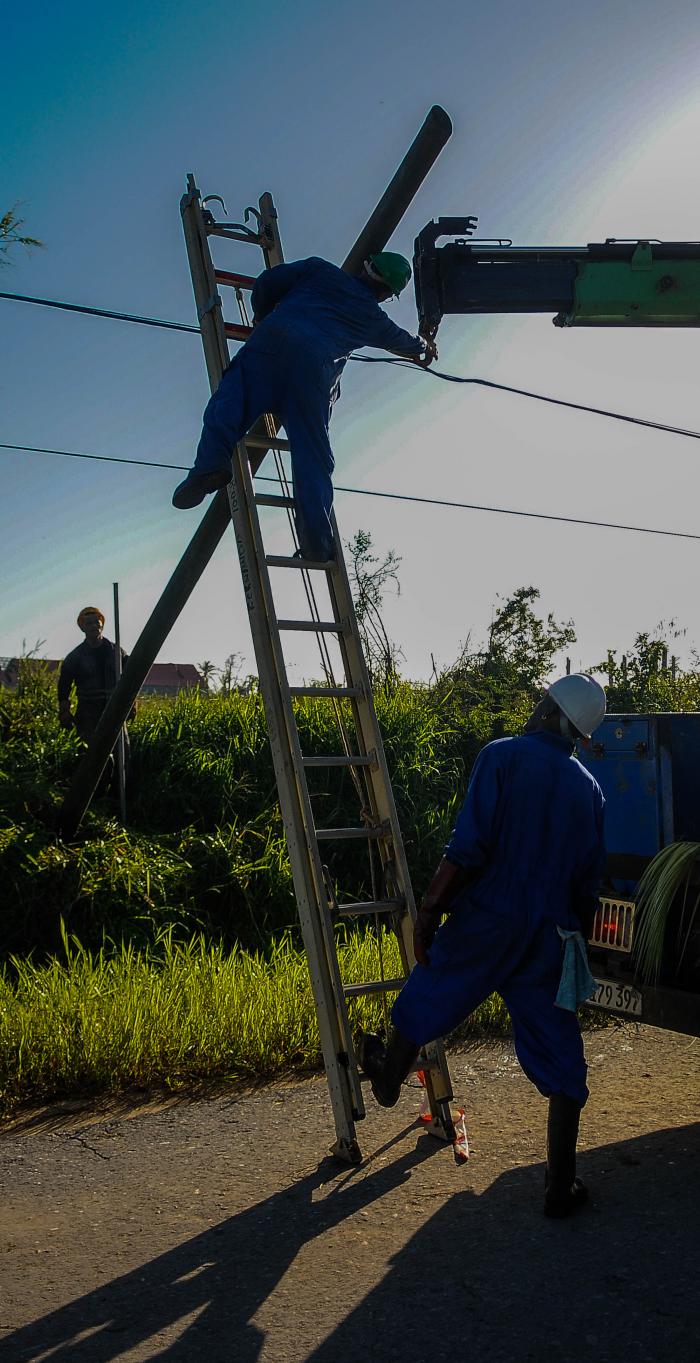 «¡Esto no está fácil!», nos dice una pinareña que camina por la carretera a La Coloma, y mira a los linieros telefónicos que –aunque no es su trabajo– levantan los postes de electricidad que obstruyen el paso de los vehículos y mantienen incomunicados a los pobladores de esa zona rural del municipio cabecera.