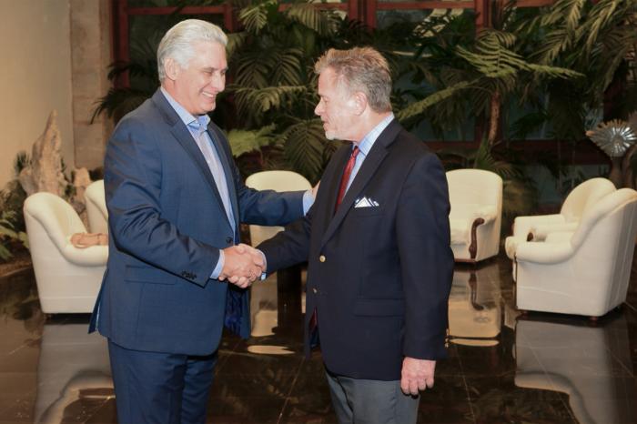 Así les expresó, en la tarde de este miércoles, en el Palacio de la Revolución, el Primer Secretario del Comité Central del Partido Comunista y Presidente de la República, Miguel Díaz-Canel Bermúdez, a empresarios estadounidenses y cubanoamericanos, con quienes sostuvo un cordial intercambio.