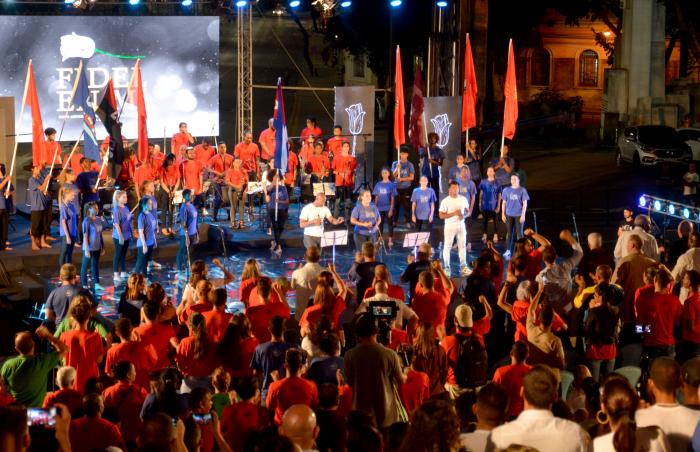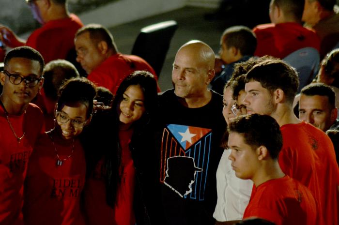 El público, junto al Alma Mater, sentado en los escalones del recinto que a tantos grandes de nuestra historia formó, despidió la noche con el grito enérgico de la consigna que se popularizó naturalmente después del 25 de noviembre de 2016: «Yo soy Fidel».