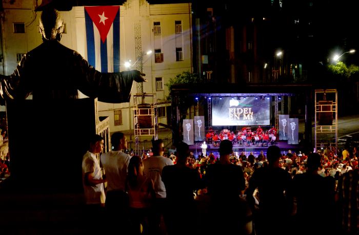 Homenajearon al Comandante mostrando su talento sobre el escenario los niños del Coro Diminuto, dirigidos por la maestra Carmen Rosa López; los estudiantes de danza de la Escuela Nacional de Arte; los intérpretes Annie Garcés, Eduardo Sosa y Arnaldo Rodríguez, los poetas Alex Díaz y Rolando Ávalos y la Banda de Boyeros. Cerró el espectáculo la combinación de esta última con las voces de Alejandro Padrón, Verónica Velázquez y Kiko Ruiz, con un arreglo que unió las antológicas piezas Pequeña serenata diurna con La maza, ambas de Silvio Rodríguez.