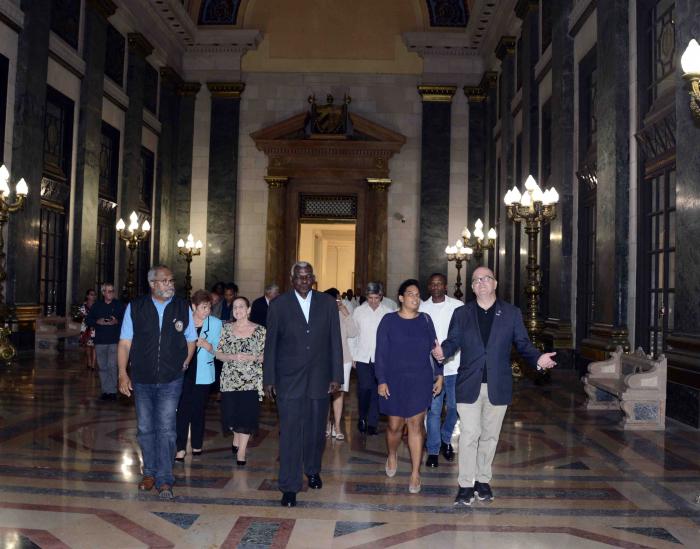 Más tarde, recorrió con los visitantes el Salón de los Pasos Perdidos del Capitolio Nacional, actividad donde participaron también Yolanda Ferrer Gómez, titular de la Comisión de Relaciones Internacionales de la Asamblea Nacional; directivos de las comisiones permanentes de trabajo del Parlamento cubano; los viceministros de Relaciones Exteriores, Josefina Vidal y Carlos Fernández de Cossío; y Johana Tablada de la Torre, subdirectora de EE.UU. de la Cancillería cubana.