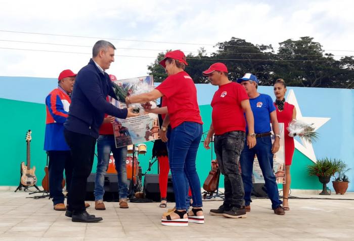 Durante la ceremonia político-cultural, los dirigentes entregaron a Yoandris Ruiz Villalón, primer secretario del Partido en Jimaguayú; y a Liuvis Fernández Acosta, presidenta de la Asamblea Municipal del Poder Popular, el reconocimiento de Municipio Vanguardia en la emulación fraternal por la efeméride.