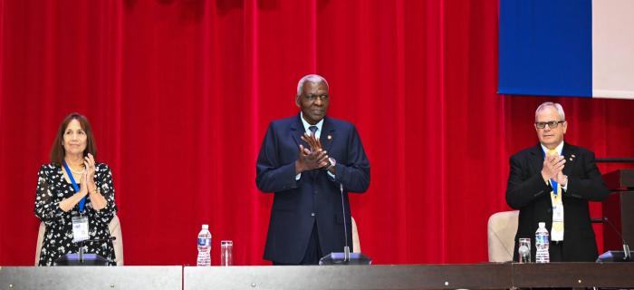 Refirió que la sesión es presidida, en su parte inicial, por el cen y participan, además, Consuelo Baeza Martín, presidenta de la Comisión de Candidaturas Nacional (CCN), y representantes de las organizaciones de masas.