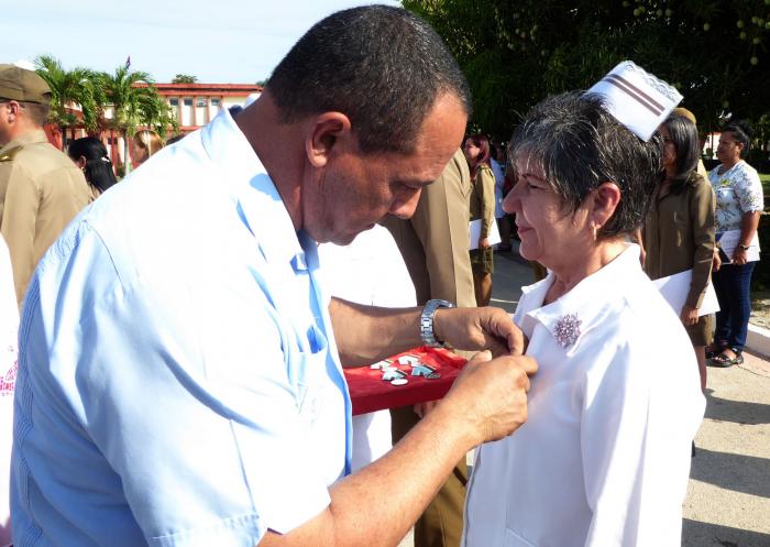 El personal de este centro asistencial con destacada labor en la atención a los combatientes y trabajadores civiles de las unidades militares de esta parte del país, también recibió de manos del miembro del Comité Central del PCC y primer secretario de la organización en la provincia, Ernesto Santiesteban Velázquez, un cuadro en el que se destaca los servicios de salud que ofrece a la población.