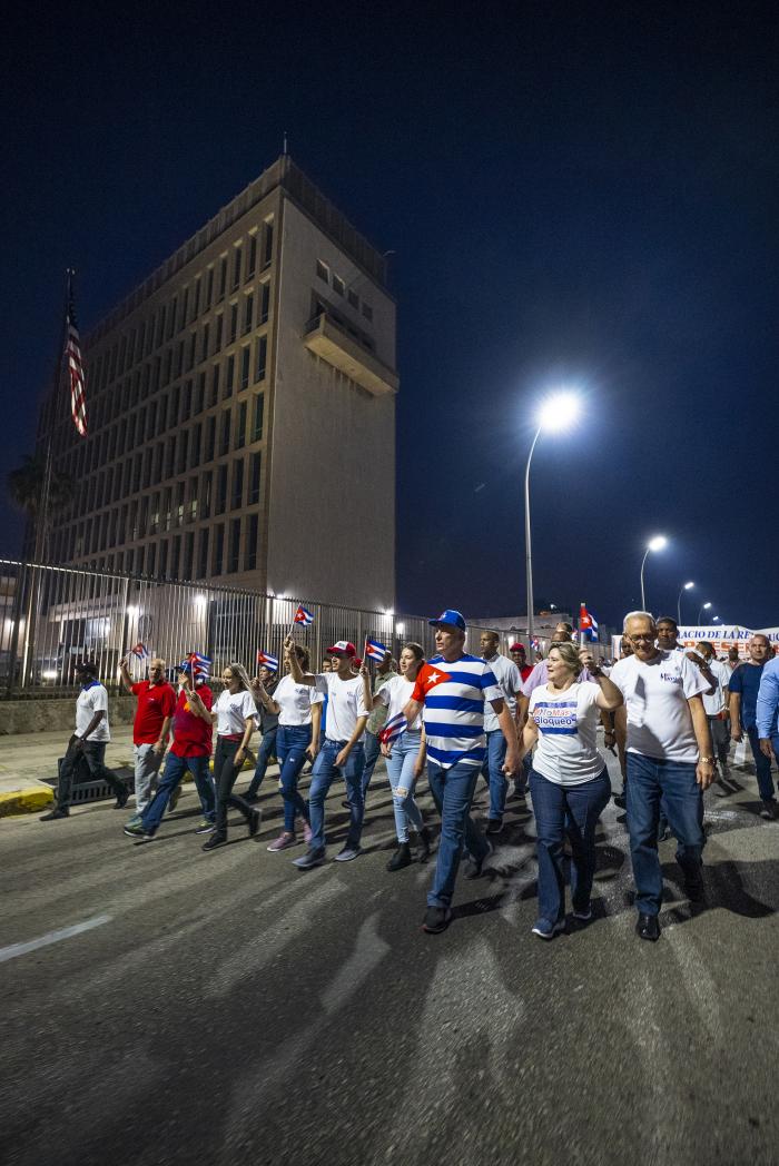 Los trabajadores arrollaban mientras iban coreando ideas, y una intensidad particular marcó el avance de la marcha cuando todos pasaron frente a la Embajada de Estados Unidos en la Isla: alguien tras los cristales del sobrio edificio frente al mar debe haber escuchado el clamor de que se ponga fin al bloqueo estadounidense contra la Mayor de las Antillas. Alguien tras los cristales seguramente vio pasar al mandatario con la bandera cubana sobre su pecho.