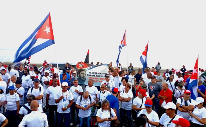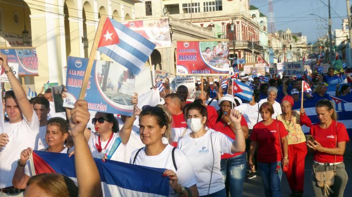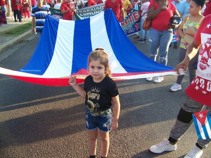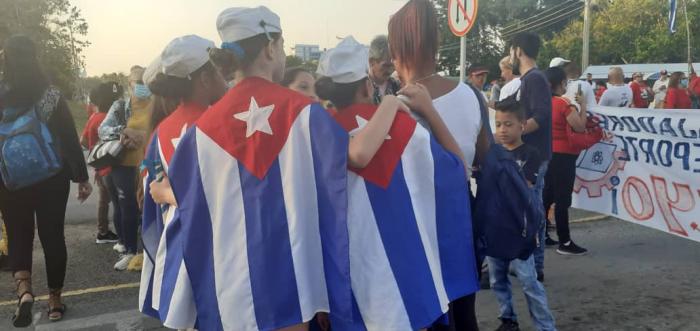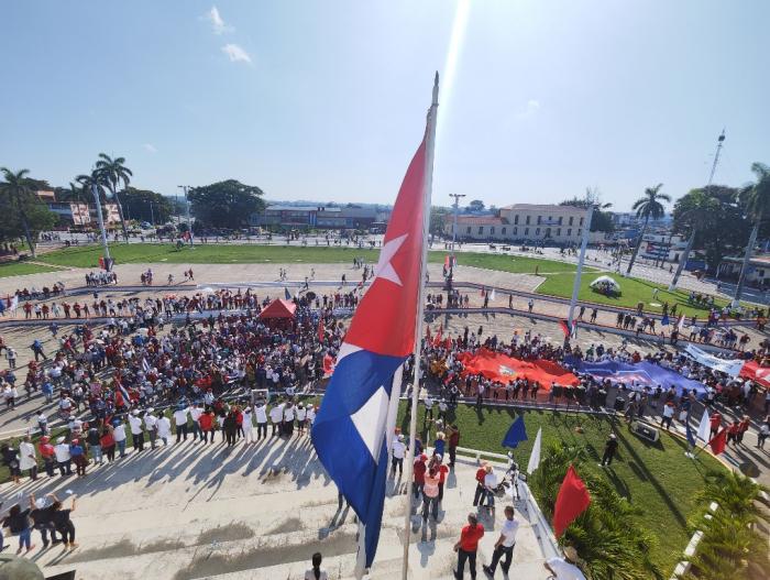 En tanto, en Guanajay, los colores de la bandera cubana, unidos al júbilo del pueblo, se alzaron para rechazar el bloqueo estadounidense impuesto sobre Cuba, y demostrar el respaldo del proletariado a cada conquista de la Revolución.