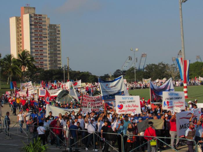 Iniciativas de todo tipo, incluyendo carteles, banderas y la exhibición de las producciones o servicios que se asumen en muchos sectores, distinguieron la marcha, marcada por un contagioso entusiasmo de pueblo.