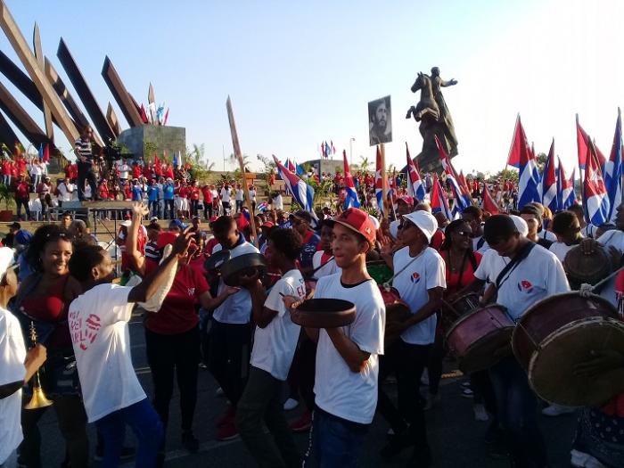 Desde horas muy tempranas, miles de santaclareños se concentraron en los puntos acordados, para de ahí caminar, en cuadro apretado, ante el imponente monumento erigido al Héroe de la Batalla de Santa Clara, el Comandante Ernesto Che Guevara, en lo que puede ser calificado como uno de los más grandiosos desfiles protagonizados en esta urbe.