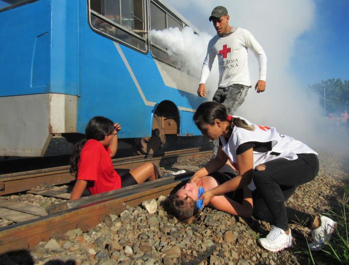 También profesionales de la Salud y voluntarios de la Cruz Roja Cubana ejecutaron maniobras de primeros auxilios y de Reanimación Cardiopulmonar en medio de desastres.