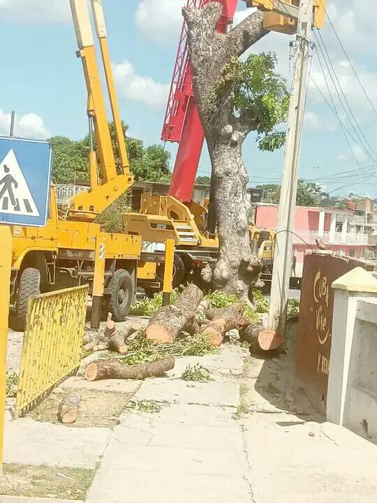 SANTIAGO DE CUBA-.Trabajadores de los Servicios Comunales y de las empresas Eléctrica y CUBIZA junto a los vecinos de la barriada 30 de Noviembre, de la Cudad Héroe, acometieton la poda de árboles y la limpieza de calles, como parte del Ejercicio Popular Meteoro.