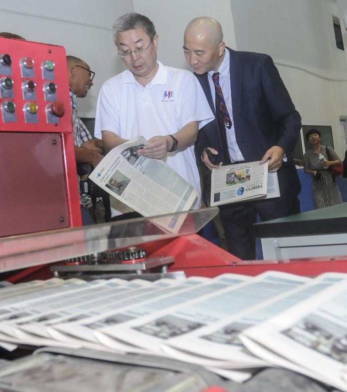 El diplomático apreció las instalaciones del poligráfico habanero, casi un año después de su última visita, y se mostró sorprendido por los avances logrados en la instalación de las nuevas máquinas. «La ejecución exitosa de este proyecto va a ser un muy buen ejemplo de las relaciones entre China y Cuba, sobre todo en el sentido de la cooperación y como testimonio de amistad», afirmó Ma.