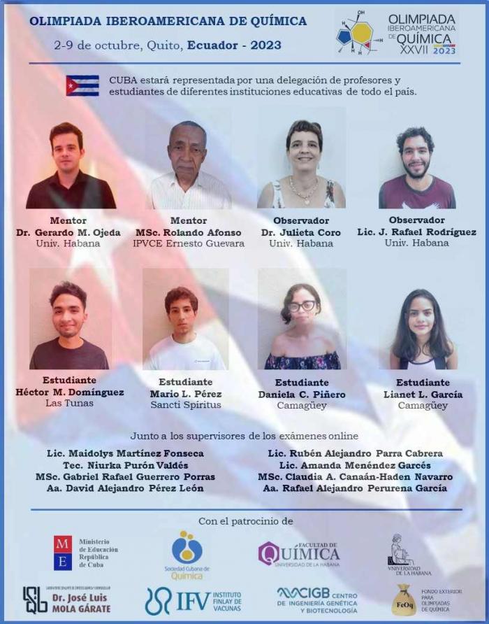 Dos medallas de oro y dos de bronce fue el resultado conquistado por los estudiantes cubanos que participaron en la edición XXVII de la Olimpiada Iberoamericana de Química, en Quito, Ecuador, desarrollada de manera online entre los días 2 y 9 de este mes.